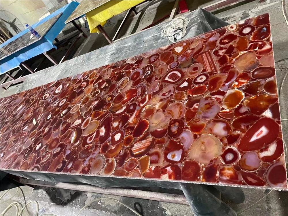 red agate backlit slabs: